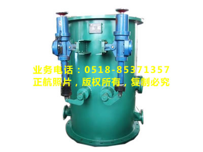 二、产品特点 目前各电厂凝汽器循环水系统中较为普遍使用的固定式和旋转式两种二次滤网,通过多年来运行实践证明,主要存在以下几点问题: 1、固定式的特点:网芯固定不能旋转,清理污物效果差,网孔易堵塞,清理要等待停机。 2、旋转式特点:网芯旋转、清洗时靠负压反冲,该滤网清污能力较固定式强,但是当洪峰季节货水污较严重时,以及水中含塑料薄膜。杂草等粘俯力较强的污物时,清洗效果仍不理想,如遇排污室刮板磨损严重时,清污效果更差,结构上也存在较大缺点: (1)驱动网芯的一对大小齿轮常年在含泥沙等杂质的水中运行、极易磨损和腐蚀,严重影响机组安全和经济运行。 (2)传动控制系统较为复杂,一般由控制电磁阀、油泵、油箱、油缸、油马达、油路控制箱等组成,运行之中最容易发生漏油、控制失灵现象。 (3)维修、检修工作量大。